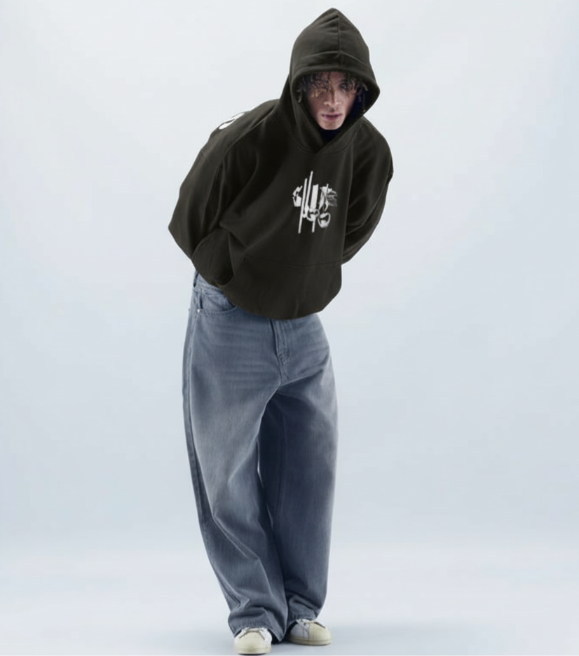 A STATEMENT PIECE FROM SYLVER'S WINTER 2025 COLLECTION, THE "METALLIC DREAMS" HOODIE EXPLORES THE DUALITY BETWEEN SHIMMERING ASPIRATIONS AND A DARKER REALITY.